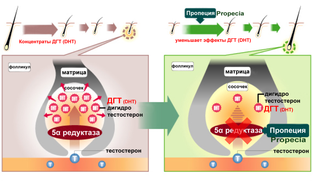 Механизм действия Пропеции (очень простая для понимания диаграмма) Каждая диаграмма представляет собой информацию МСД