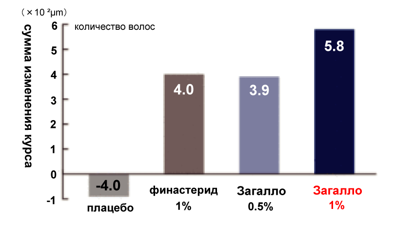 (рисунок взят с сайта GSK) Эффект Загалло (дутастерида) на рост волос, сравнение с финастеридом Эффект роста волос у